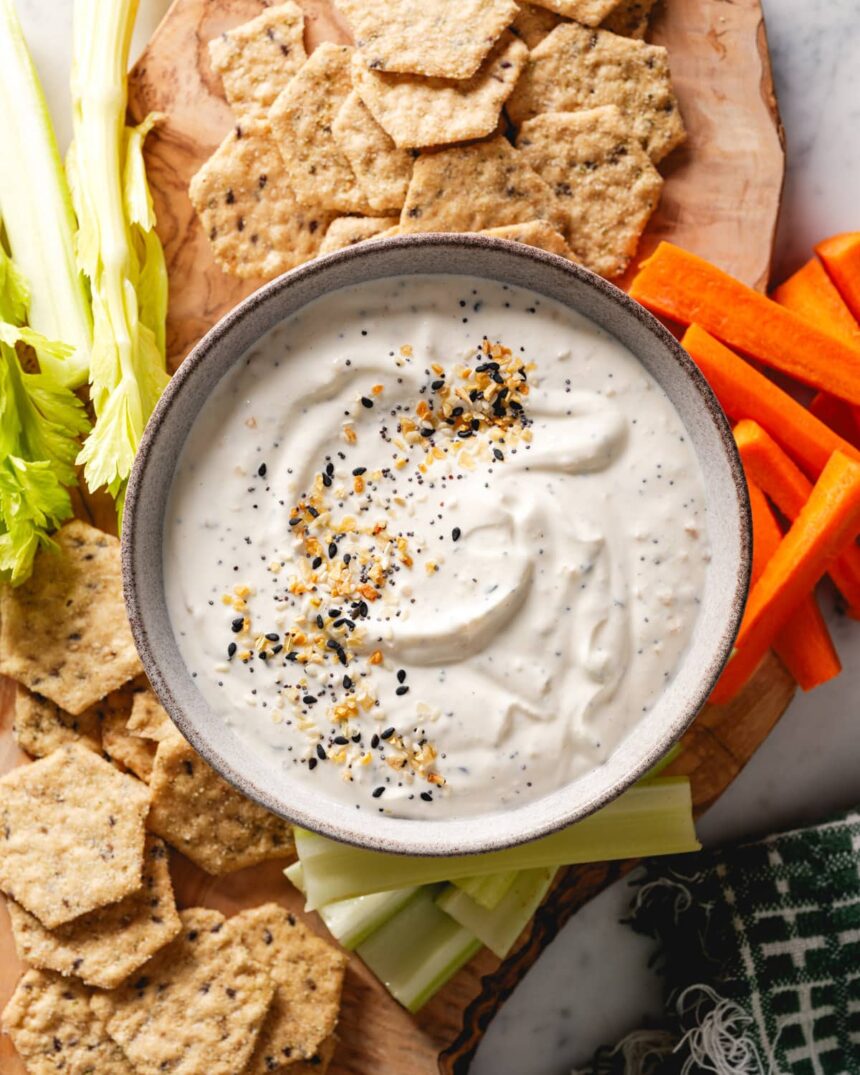 Galite padaryti šį panardinimą iki 2 dienų iš anksto, todėl jis yra idealus vakarėliams. Prieš patiekdami, tiesiog greitai išmaišykite ir pridėkite tą galutinį pabarstykite viską, kas yra bagelio prieskoniai, kad būtų šviežiausia išvaizda.