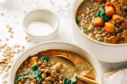 Saldžiųjų bulvių lęšių sriuba – verda pora